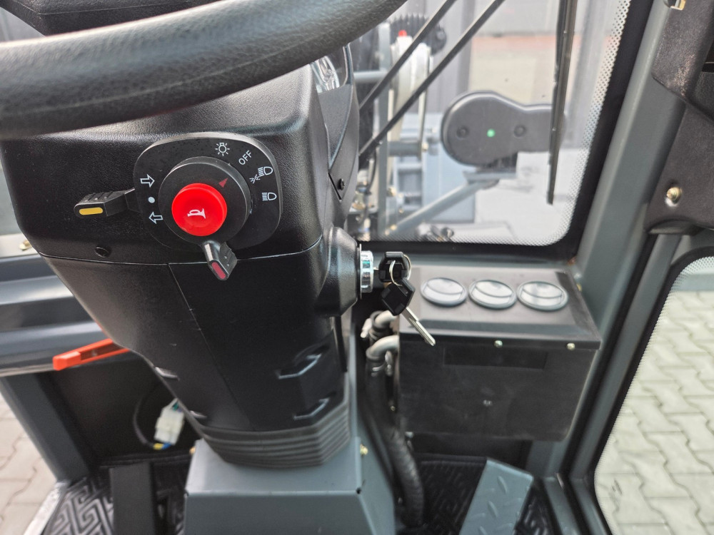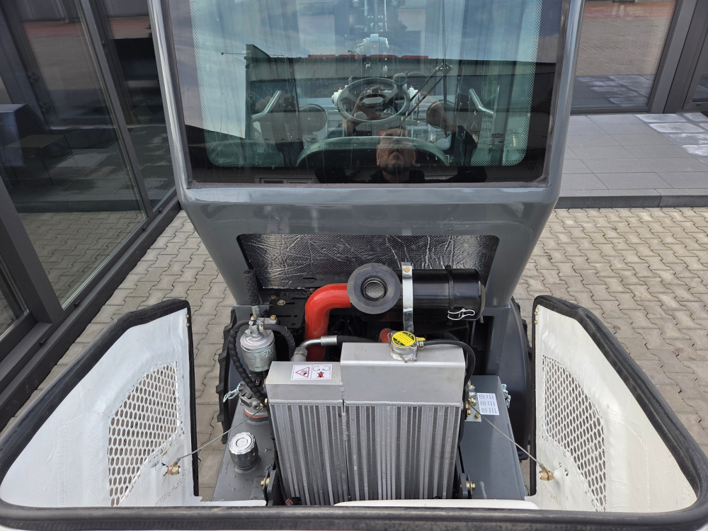 Ładowarka kołowa marki XTM X212 z kabiną to kompaktowa ładowarka przegubowa o masie 2250 kg, stanowiąca nowoczesną alternatywę dla maszyn typu Fadroma, zapewniając jednocześnie większy komfort pracy operatora. Silnik Kubota V1505-EF01 o mocy 25 KM gwarantuje stabilną pracę przy pełnym obciążeniu, a układ hydrauliczny 32 L/min (19 MPa) umożliwia precyzyjne operowanie osprzętem. Kabina zwiększa bezpieczeństwo i izoluje operatora od warunków atmosferycznych, co ma realne znaczenie przy całodziennych pracach. Udźwig 1248 kg oraz wysokość podnoszenia 2931 mm sprawiają, że ładowarka sprawdza się w załadunku kruszywa, palet i materiałów sypkich.