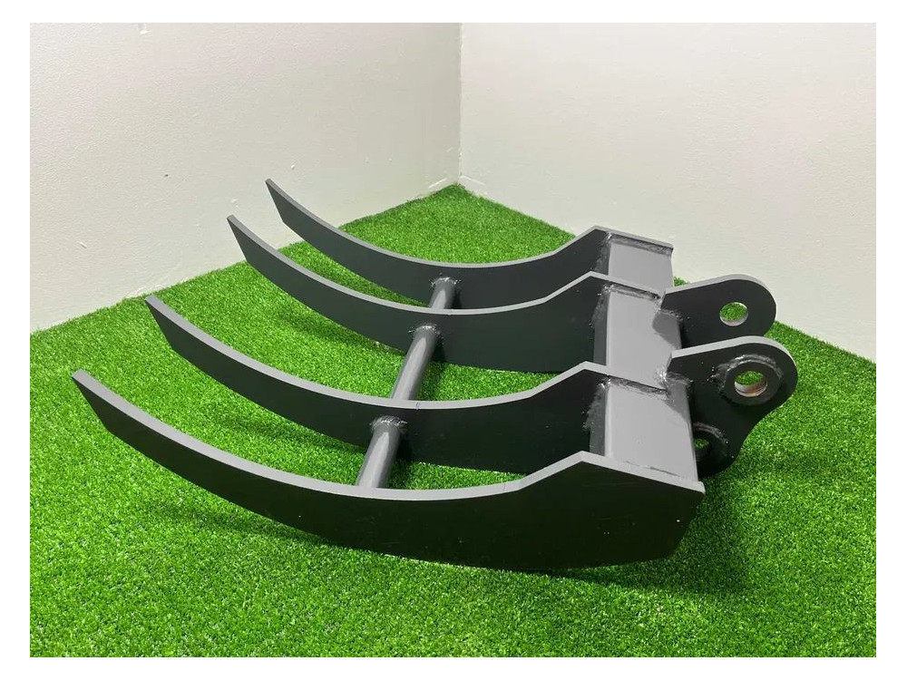 Grabie do minikoparki XTM to uniwersalny osprzęt roboczy przeznaczony do mini koparek o masie od 800 do 1500 kg, wykorzystywany przy precyzyjnych pracach porządkowych i ziemnych. Szerokość robocza 410 mm oraz długość całkowita 580 mm umożliwiają dokładne zbieranie kamieni, korzeni i resztek organicznych z powierzchni gruntu. Konstrukcja o długości 470 mm bez zaczepu zapewnia dobrą widoczność narzędzia podczas pracy, co zwiększa kontrolę operatora. Średnica otworów sworznia 280 mm pozwala na stabilne i bezpieczne mocowanie osprzętu do minikoparki.