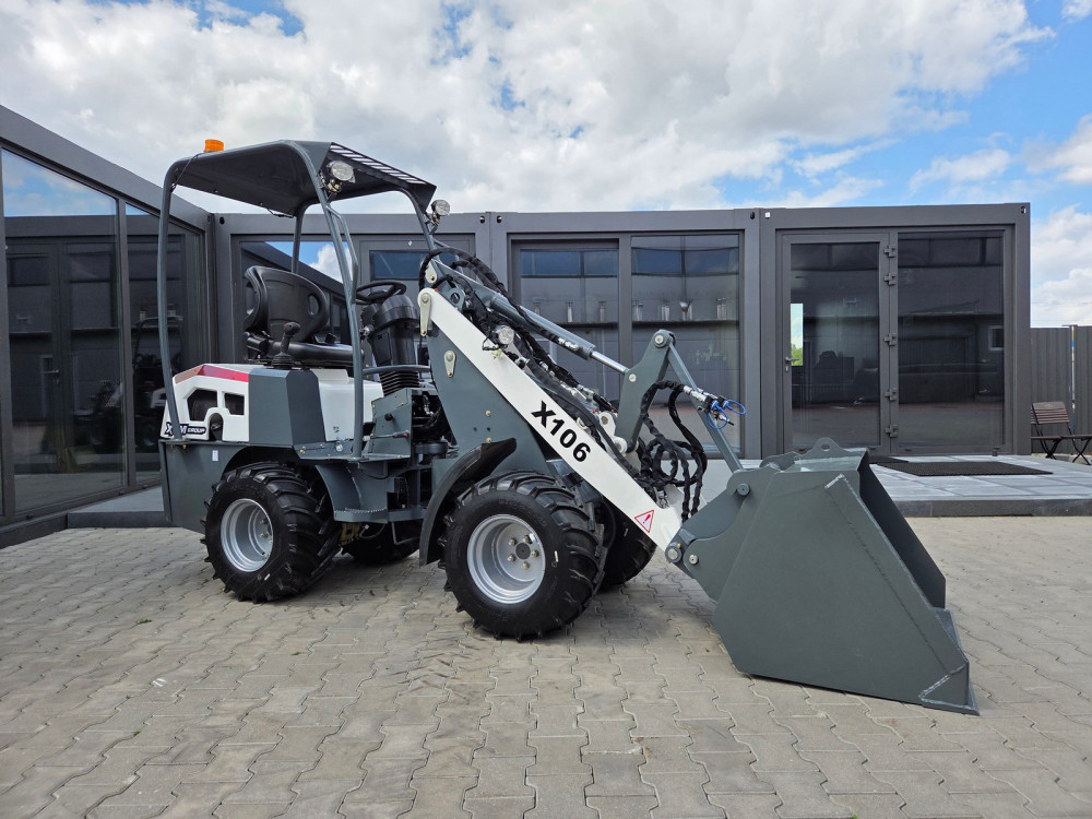 Model X106 idealnie nadaje się do prac komunalnych, lekkich robót budowlanych, prac rolniczych, obsługi magazynów oraz wszędzie tam, gdzie potrzebna jest mała, ekonomiczna i zwrotna maszyna załadunkowa.