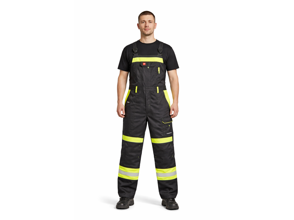 Wykonane z wytrzymałych materiałów o podwyższonej odporności na przetarcia i zniszczenia, ogrodniczki zapewniają ochronę i trwałość nawet w trudnych warunkach pracy. Kontrastowa kolorystyka czarno-żółta nie tylko podkreśla profesjonalny wygląd, ale także zwiększa widoczność użytkownika. Dodatkowo zastosowane elementy odblaskowe znacząco poprawiają bezpieczeństwo w miejscach o ograniczonej widoczności lub przy pracy po zmroku.
